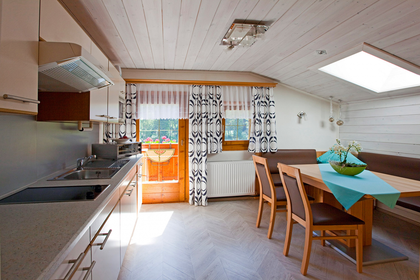 Gemütlich eingerichtet und mit moderner Ausstattung auf einer Fläche von ca. 60 m² - gelegen im Dachgeschoss unseres 1949 erbauten Holzhauses mit traditionellem österreichischen Charme.